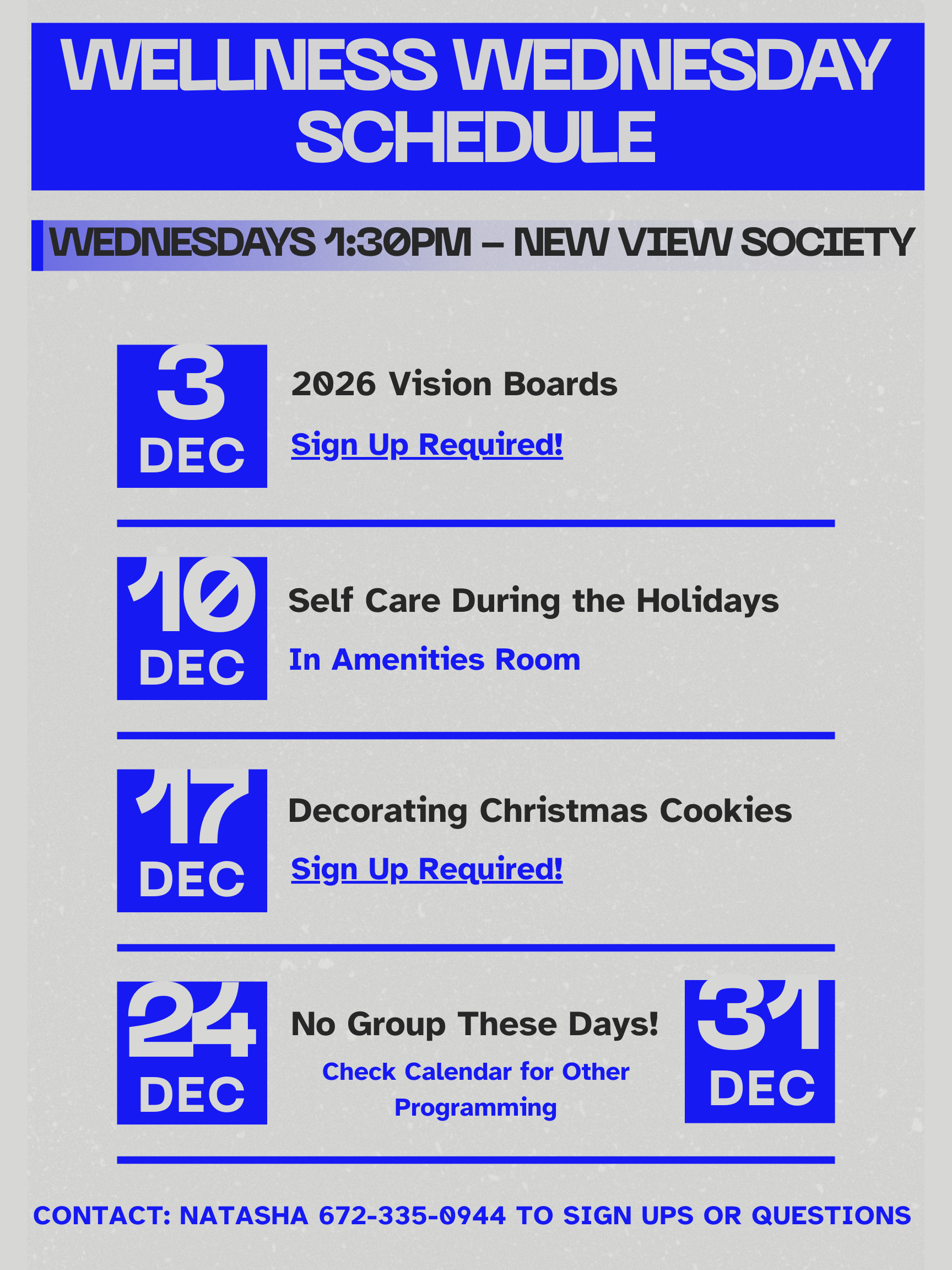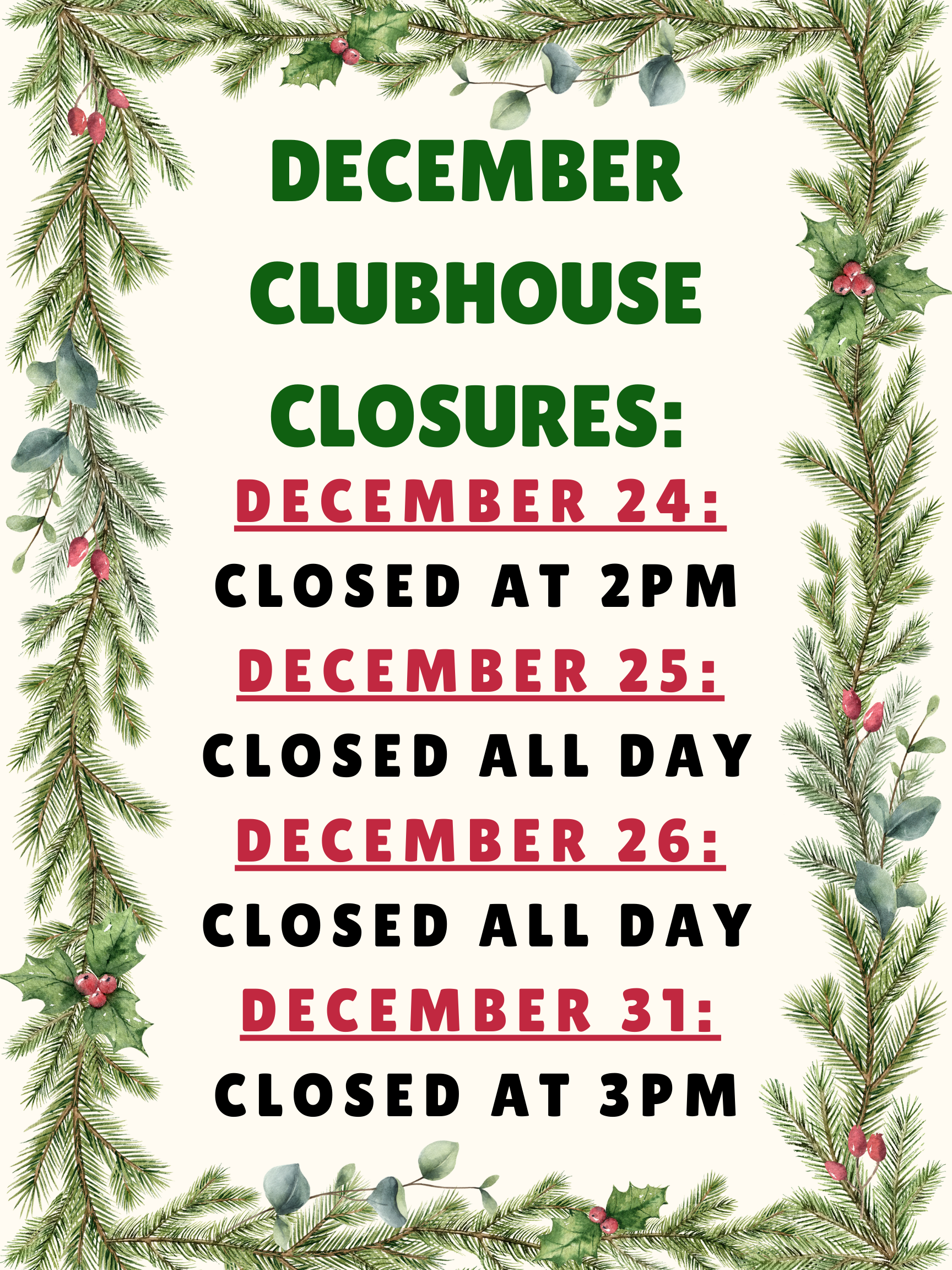 Any Clubhouse posters for the month of December will be added here and be available at the Clubhouse!