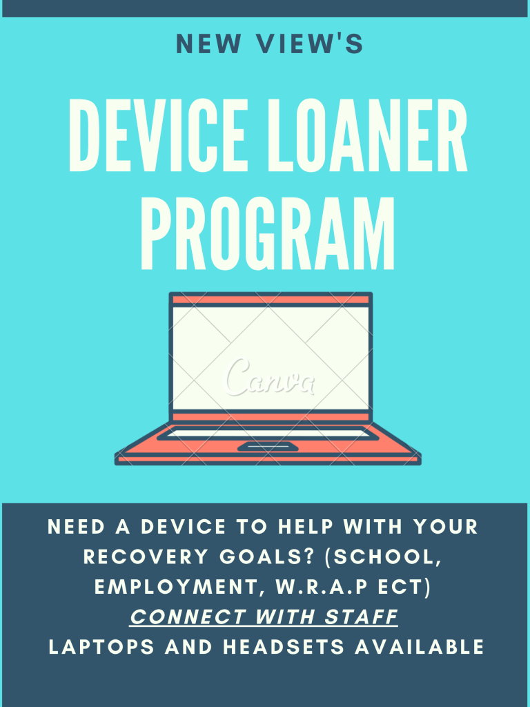New View Clubhouse has laptops & headsets available to lend out for those that need it. Connect with a staff for more information!