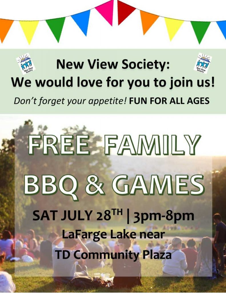 New View Society is throwing a Family BBQ to celebrate our members and their families. The BBQ will be filled with great food and games for all ages. Please feel free to come and bring anyone you would like! Information for the event will be included below.