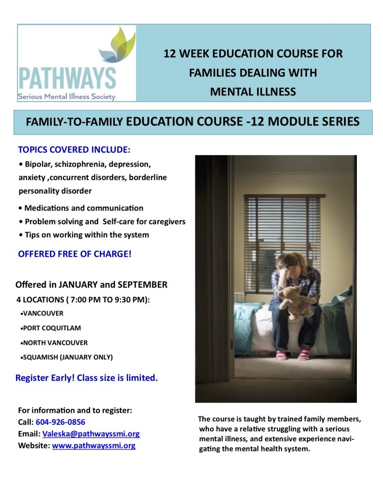FAMILY-TO-FAMILY EDUCATION COURSE – 12 MODULE SERIES New View Society is hosting the Pathways Serious Mental Illness Society Family to Family Education Course from September 17th to December 3rd, 2019.